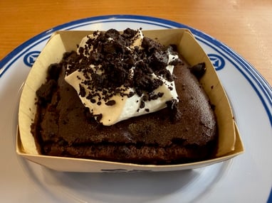 写真は「くら寿司」の今月限定の「ホットぜんざい」と「ガトーショコラ」です。