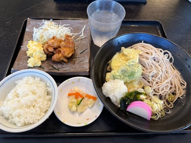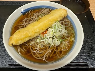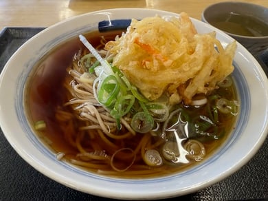写真は先週食べた「どんどん庵」の「かけそば(並)430円&野菜かき揚げ150円」です。
