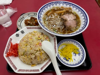 写真は昨夜食べた「うま屋」の「うま屋セット1,100円&うま屋のギョーザ420円&うま屋の唐揚げ520円」とデザートで食べた「杏仁プリン220円」です。